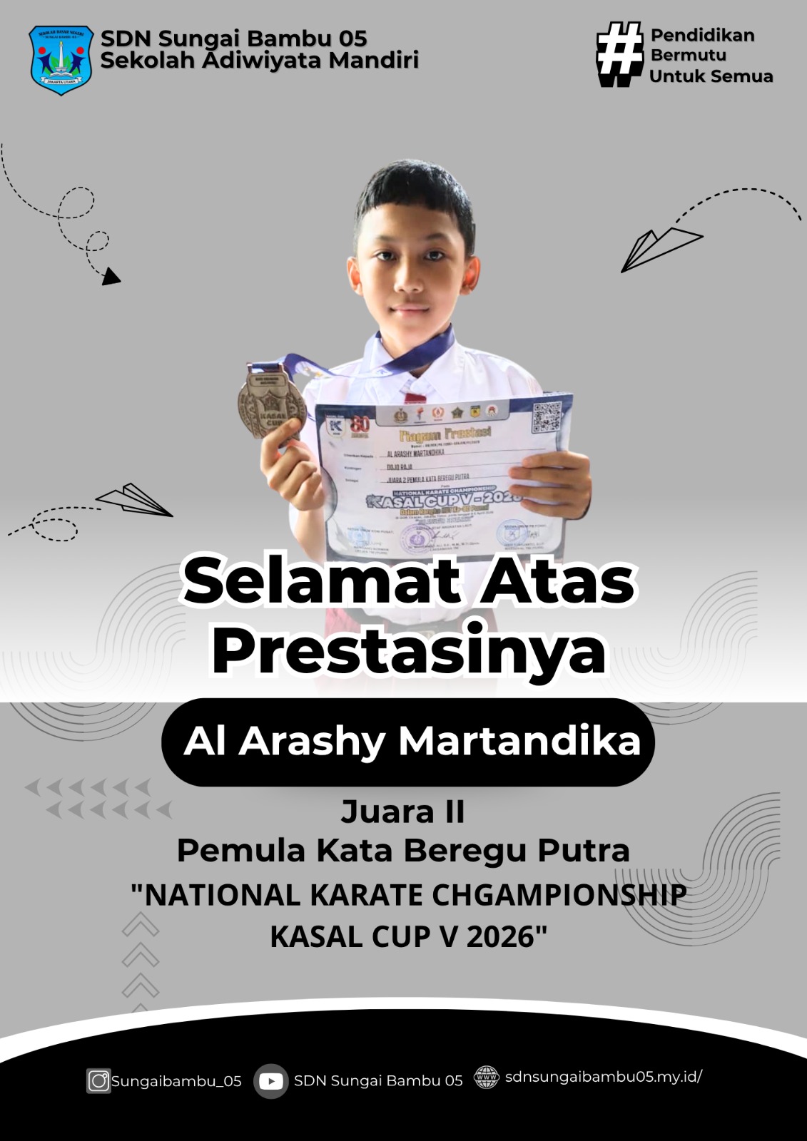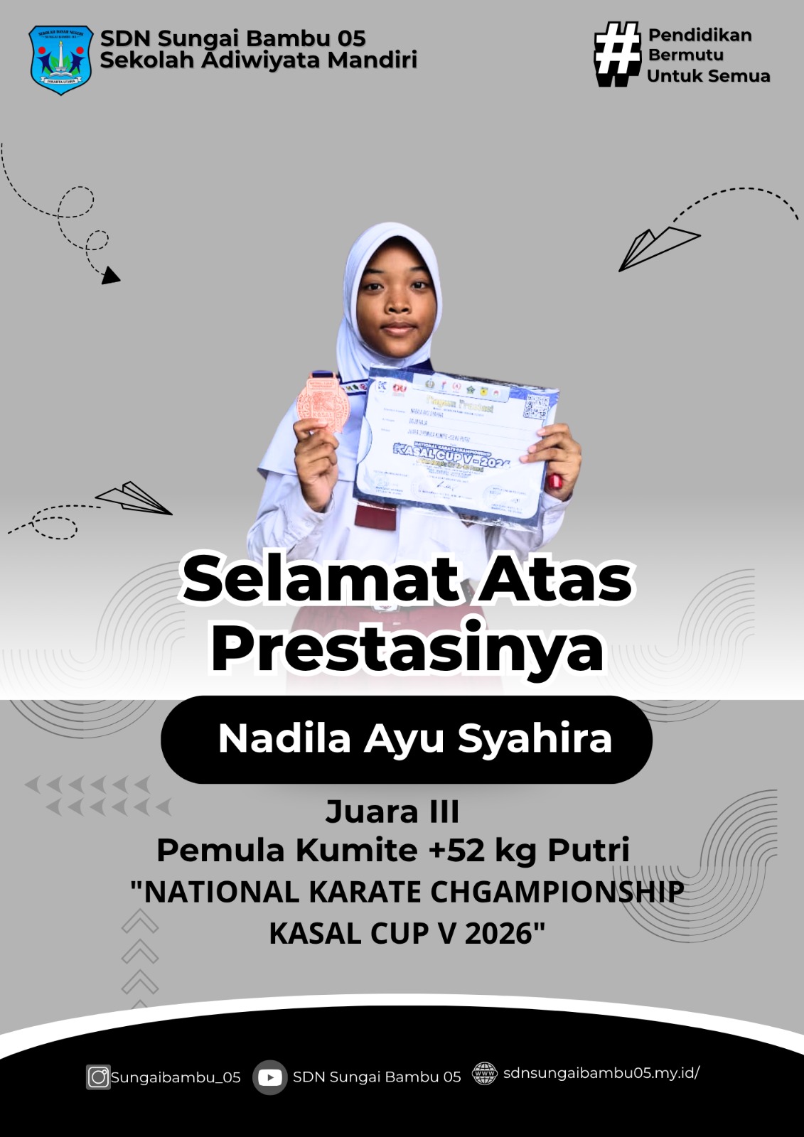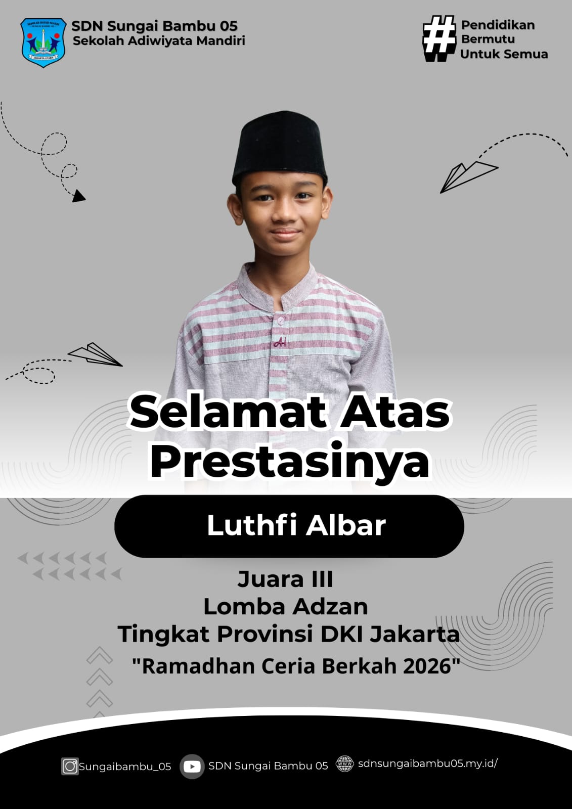 Siap Menghadapi Tantangan Global Dalam Lingkungan Belajar yang Ramah Anak.Bersama SDN SUNGAI BAMBU 05 kami hadir untuk membentuk anak-anak berakhlak mulia, cerdas, dan siap memimpin masa depan.